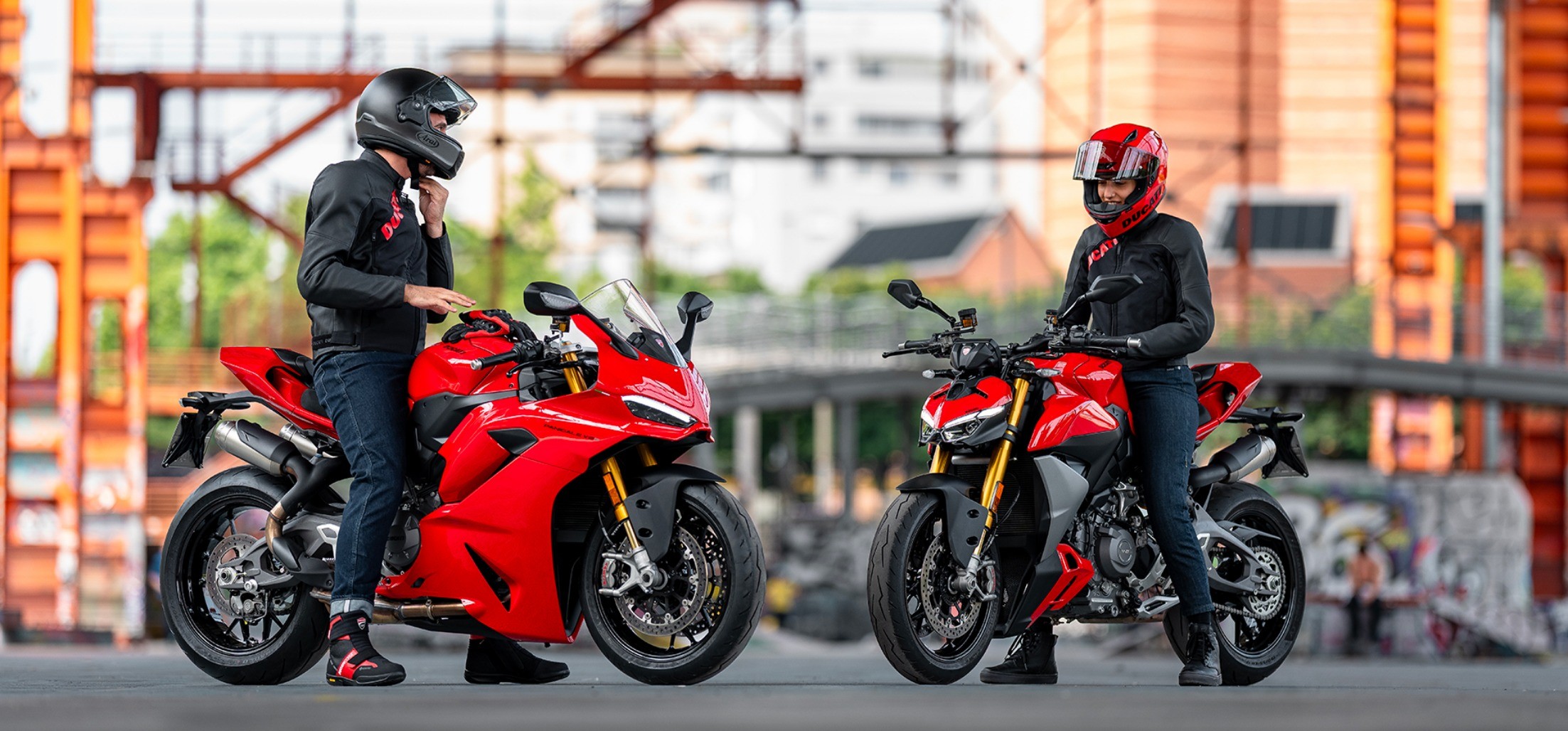 Completing the look is the Ducati Corse V9 helmet by Arai, featuring Aldo Drudi graphics inspired by the MotoGP livery and offering top-level protection and comfort.