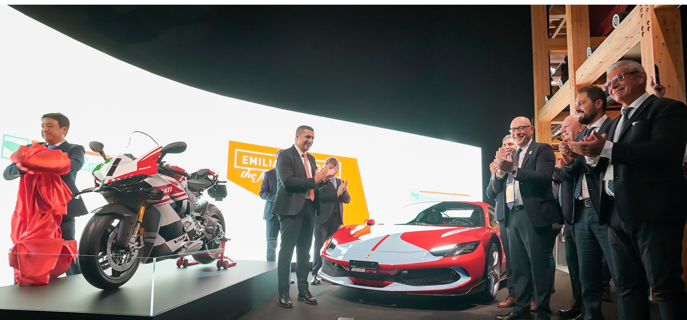 As part of this rotation, the week dedicated to Emilia-Romagna kicked off on 21 September, inaugurated in the presence of the President of the Emilia-Romagna Region, Michele De Pascale, and Vice President Vincenzo Colla. A rich calendar of events intended to introduce the Japanese and international public to a region that combines industry, universities, cutting-edge research centres, tourist attractions, culture, and gastronomy, the cradle of the Motor Valley and home to the most important two- and four-wheeled brands, with two symbols chosen to represent it: Ducati and Ferrari.