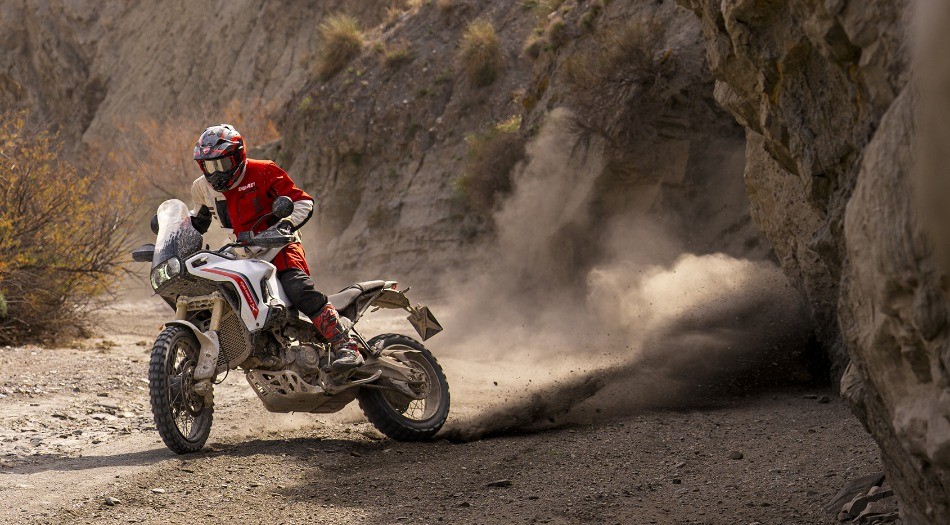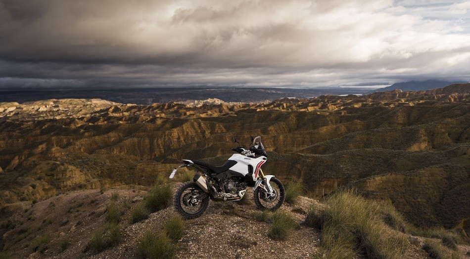 The Matt Star White Silk livery enhances DesertX’s functional design with a clean, technical look. The matte white finish highlights the bike’s robust forms and off‑road character.