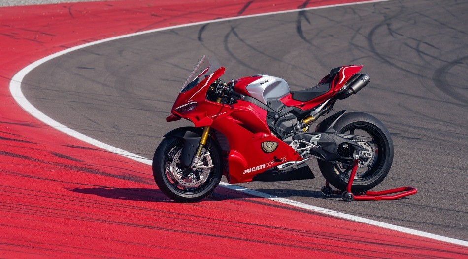 Öhlins suspension, Lithium-ion battery, Quick adjustment buttons, Forged aluminium wheels, Coming Home, Single seat configuration, Ducati Power Launch (DPL) DVO, TFT colour display, Full LED lighting system, Full LED headlight, Daytime Running Light (DRL), Self cancelling turn indicators, Lap Timer, Pit Limiter, Rear susopension rod with adjustable length, Ducati Racing Gearbox (DRG) with Ducati Neutral Lock (DNL), Ducati Quick Shift (DQS) up/down 2.0, Billet aluminium steering stem with bike number, Öhlins SD20 steering damper