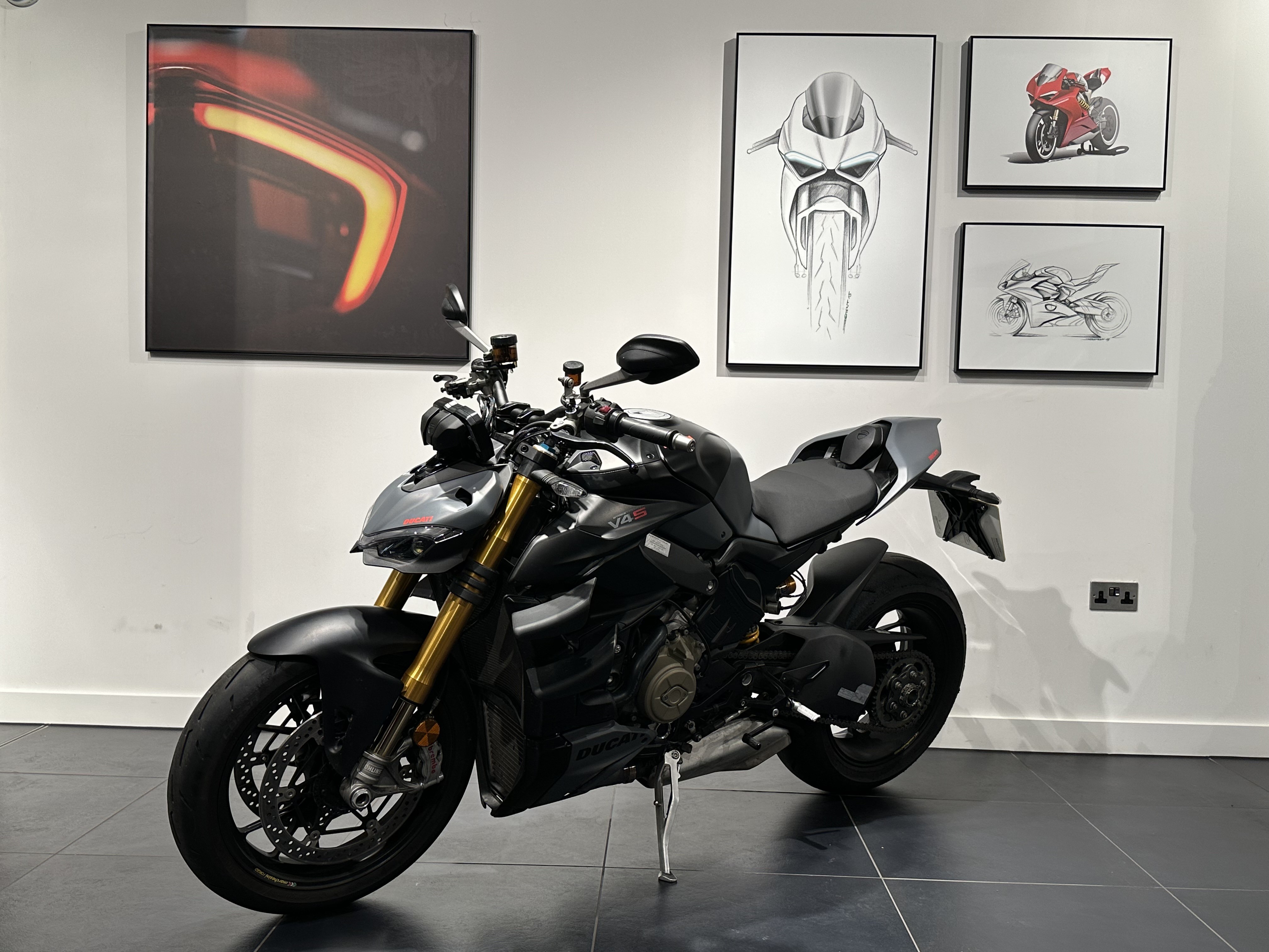 Unleash pure adrenaline with the Streetfighter V4 S: Ducati’s naked sport beast powered by a high-revving 1,103 cc Desmosedici Stradale V4 engine delivering breathtaking performance and an outstanding power-to-weight ratio. Precision-tuned Öhlins Smart EC 3.0 suspension, forged aluminium wheels and Brembo brakes ensure razor-sharp handling, while cutting-edge rider electronics keep you hooked from the freeway to the back-roads. Striking aggressive design and advanced ergonomics complete the package for an unforgettable ride every time you twist the throttle.